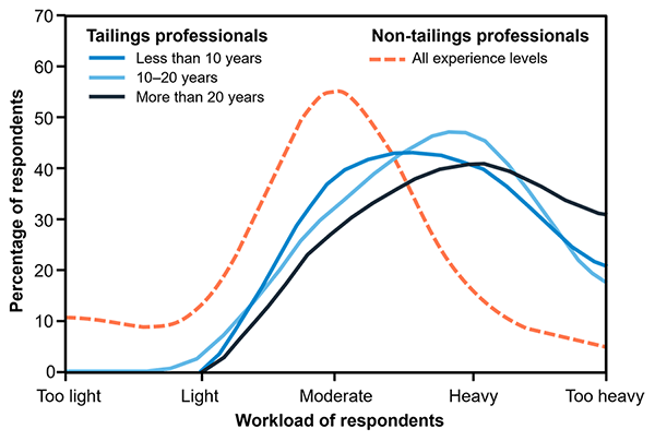 One of the clearest messages from the survey is that tailings professionals are carrying heavier workloads than many of their peers in other engineering disciplines. Mid-career and senior practitioners, in particular, described workloads that leave little time for mentoring or coaching junior staff—activities that are essential for building the next generation of tailings expertise.