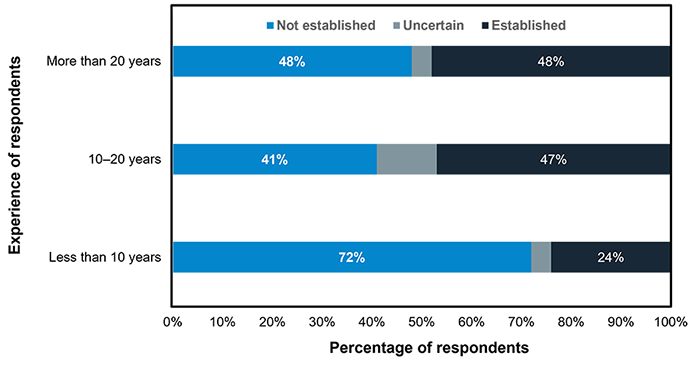 Primary region of professional practice and experience of survey respondents